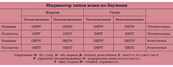 Тип кожи ORPW: жирная, устойчивая к раздражению, пигментированная, склонная к появлению морщин