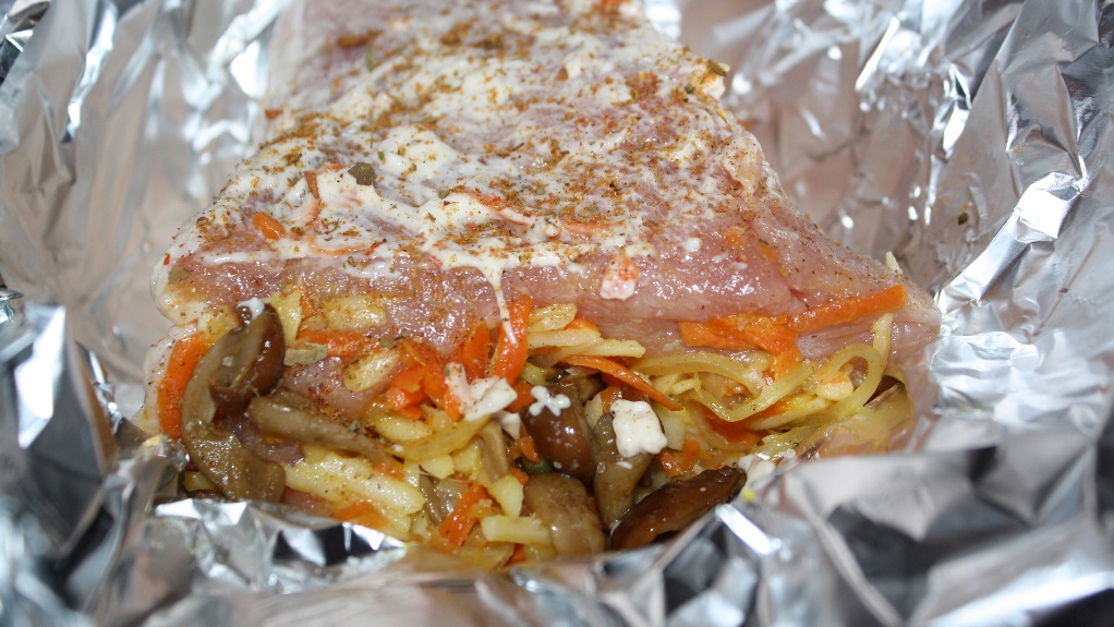 раздельно между двумя слоями пленки. Мясо посыпать половиной пряностей и солью, свернуть рулетами и оставить в контейнере под крышкой в прохладном месте на 2-3 часа.