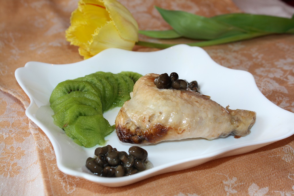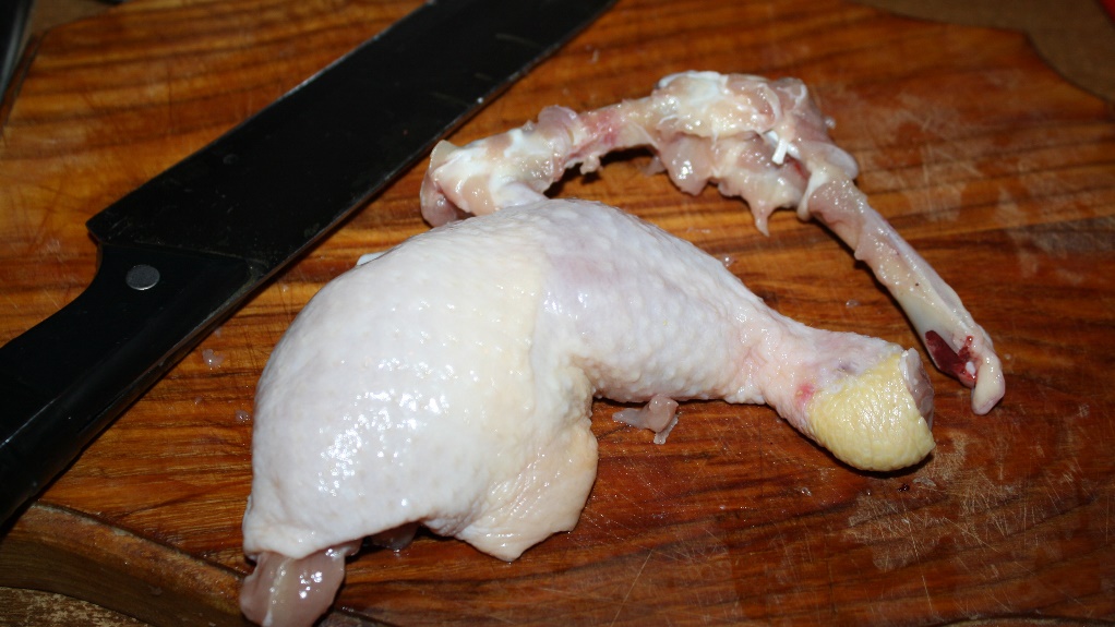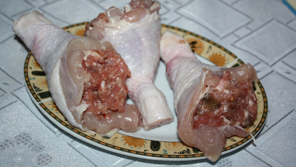 Или завернуть фаршированные ножки в фольгу, влить туда по столовой ложке бульона и запечь в духовке или сварить на пару. Аналогично можно приготовить куриные голени.