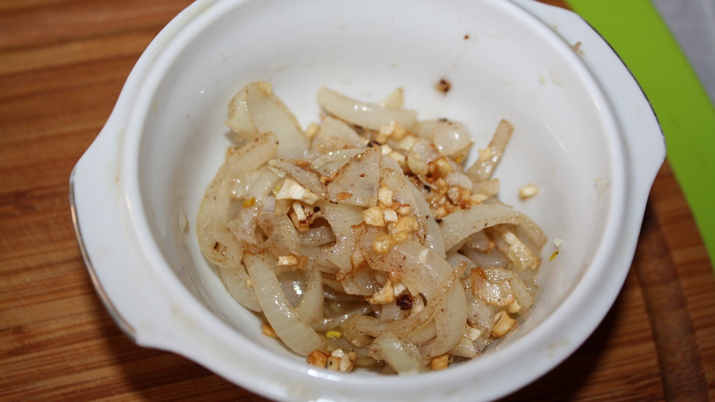 Лук и чеснок очистить, нарезать, пассеровать в разогретом масле 1-2 минуты. Овощи вынуть из масла.