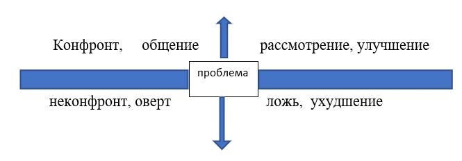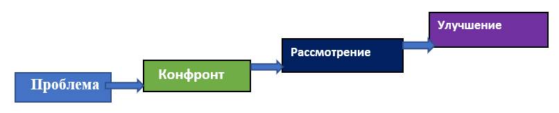 Проблема – конфронт – рассмотрение – улучшение. Это восходящая спираль.