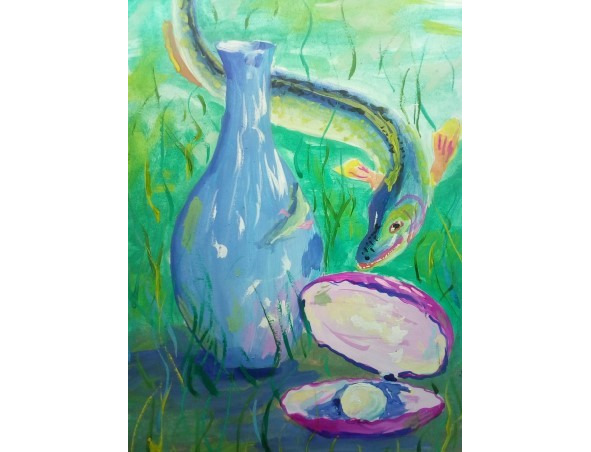 И вот как – то раз, царь Тихомира спрашивает, как так получается, как не переставляю я вазы твои рисунки подгоняя, картинка не складывается, или она не должна складываться. Тихомир царю поясняет, не сложится картинка вся на вазах, там, где пробелы царь видит, там произойдут события, которые сам царь и должен пережить в жизни, отражать их заранее нельзя. Присмотрелся царь, а действительно, его то изображения на рисунках ваз нигде нет. Стал царь требовать изготовить вазы с пропущенными рисунками, а Тихомир отказывается. Как не уговаривал царь Тихомира, тот никак не соглашался. Тогда царь разозлился и приказал отправить Тихомира собирать чудо – ягоды на болото, или наберет чудо – ягод и вернется да поумнеет и будет знать как с царем спорить, или сгинет на болоте.
