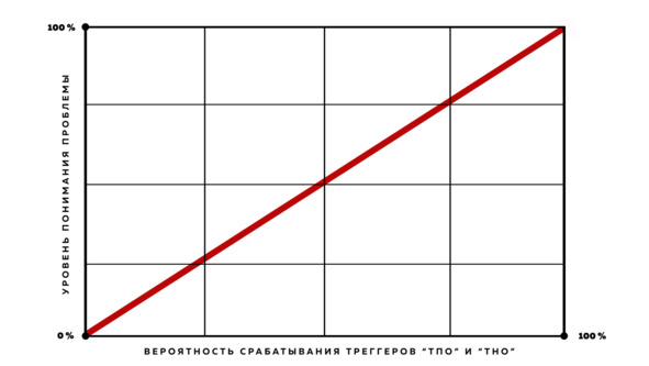 На рисунке выше отчетливо видна зависимость двух показателей. Чем глубже мы понимаем описываемую нами проблему, тем выше вероятность срабатывания эмоциональных триггеров.