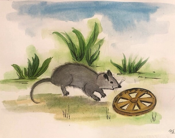 А маленькая, шустрая Крыса в это время, не торопясь, бежала по тропинке. И вдруг она увидела в пыли что-то круглое и поблёскивающее: «Что это такое? Монета? Нет! Вроде колесо! А может, всё-таки монета? Вот так удача!»