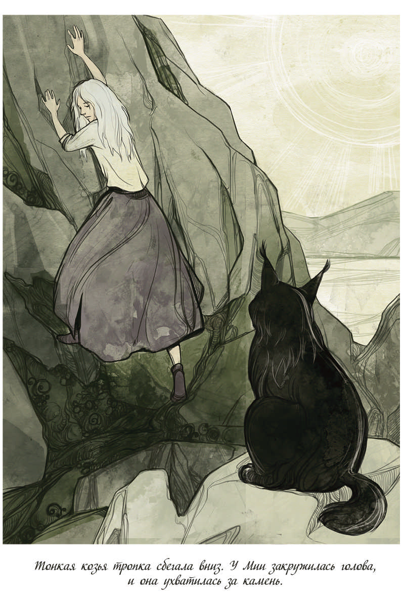 Тулукт равнодушно дернул хвостом и спрыгнул с камня. Крайне неразумно вести разговоры рядом со спящим драконом, тут ее тулукт прав. Мия сунула книгу в карман юбки и огляделась. Тонкая козья тропка сбегала вниз. У Мии закружилась голова, и она ухватилась за камень. «Я не спущусь. Я останусь тут навечно», – подумала она устало. Она прислонилась к скале спиной и тут же почувствовала, как веревка, которую Рич намотал ей на пояс, впилась в кожу. Веревка! Мия торопливо стала развязывать ее. Теперь ей казалось, что дракон может проснуться прямо сейчас. Скорее, скорее! Она сделала петлю, как учила ее мама, накинула на валун, подергала и кинула свободный конец вниз. Она заскользила по веревке, чувствуя, как та обжигает ладони, сдирает кожу, но было уже все равно, только бы убраться отсюда поскорее! Веревки хватило как раз до нижней террасы скалы, там стоял тулукт, смотрел на нее внимательно. Мия попыталась сдернуть петлю с камня, но у нее не получилось.