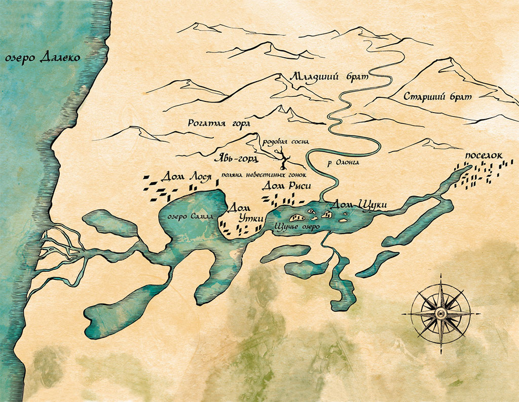 Чуть ниже деревни, где выросла Джалар, Олонга впадала в озеро Щучье, длинное, вытянутое, со множеством крохотных, как родинки, островов. На них жили люди Дома Щуки. Сильное речное течение не сразу растворялось в тишине озера и несло лодки еще долго. Джалар всегда казалось, что Олонга и не кончается в Щучьем, а прячется ненадолго, чтобы потом вырваться из него и понестись дальше, к следующему озеру – Самалу. Оно было больше Щучьего, по берегам его раскинулись луга с веселыми березовыми и сосновыми перелесками и пастбища. Здесь селились люди Дома Лося. А между Щучьим и Самалом – дети Дома Утки. Семья Джалар была из Дома Рыси. С людьми Лосиного Дома они дружили, а вот с Утками и Щуками бывало по-разному.