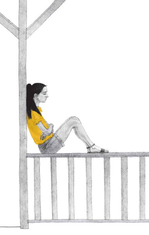 Жужка вышла на крылечко. Смотрит в пол. Косичка торчит на затылке. Эх, Жужка, Жужка, нельзя тебе бояться летать, не положено.