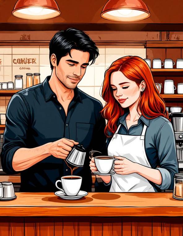 День начался с доставки свежей выпечки, наполнившей кафе восхитительным ароматом ванили и корицы. Пока мы с Хлоей готовили кофе, я заметила, как он внимательно следит за мной, его взгляд то и дело задерживался на моих руках, когда я взбивала молоко для латте.