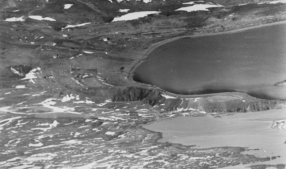 Несколько тысячелетий назад весь полуостров был покрыт ледником. Потом ледник сократился, и теперь он покрывает лишь центральную, наиболее высокую часть острова. После ледника остались широкие долины и котловины между холмами. В котловинах находятся небольшие озера. Озер я насчитал штук тридцать. Они лежат на разных уровнях. Вот выше «нашего» озера, вблизи которого строится станция, – мы уже назвали его озером Китеж – лежит второе озеро, а выше, под утесистой скалой в центре полуострова, синеет еще одно озеро. Оно образовалось у снежника, шлейфом покрывающего крутой склон холма.