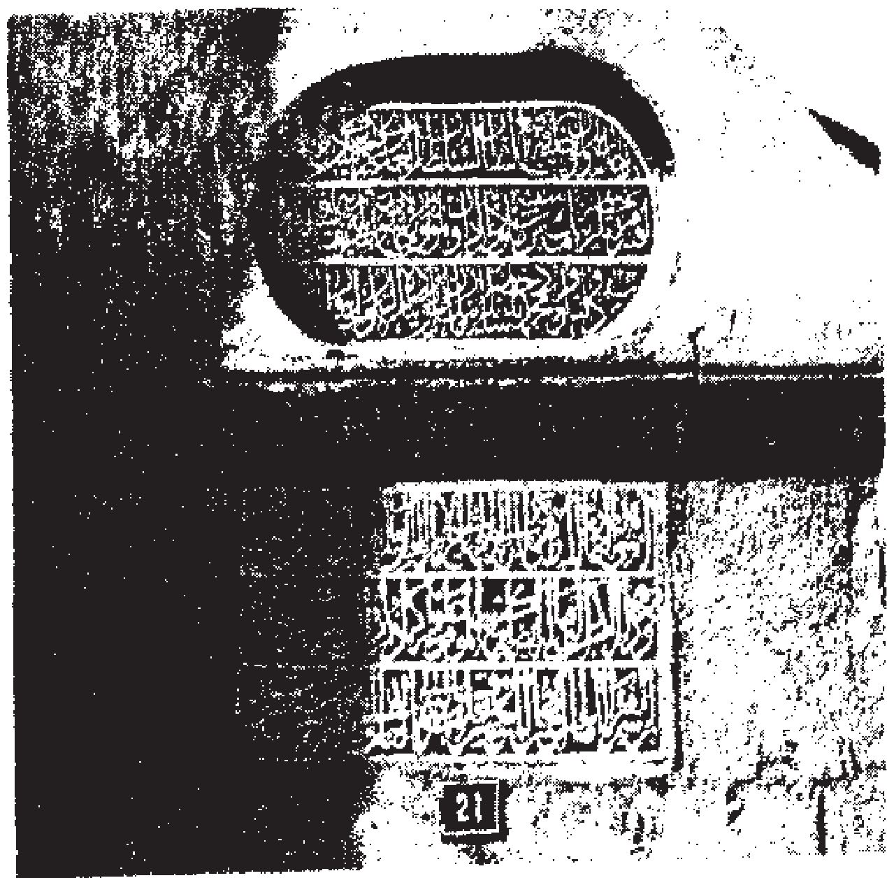 Altta, Sadreddin Konevî’nin imaret ve kütüphane kitabesi üstte ise Sultan II. Abdülhamid devri Konya Valisi Mehmed Ferid Paşa’nın 1317 tarihli tamir kitabesi.
