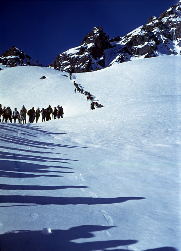 For instance, following the spirit of those times, throughout the whole route, right along the path, young climbers were to issue wall newspapers under such titles as “We shall reach it!” “We shall win!”, and others. The last issue was made at the very summit under the title “We win!”.