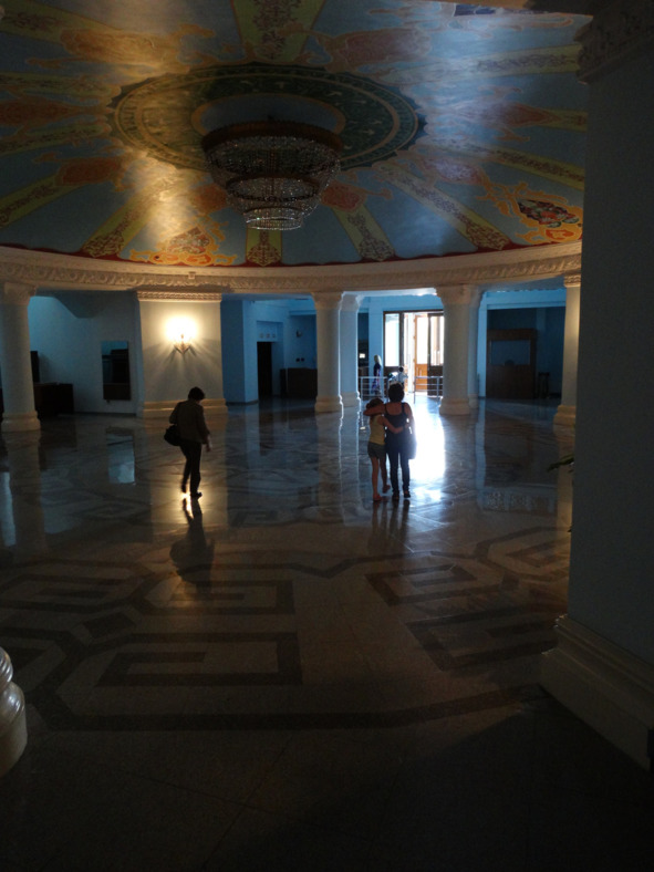 “First, the building had not clearly identified image of the Soviet scientific institution, it had some features of cult building from the past; main facade had massive solid portals and bulky spherical cupola, it resembled madrasas (spiritual schools). And secondly, the decoration of the building had not a national Kazakh ornament, making it look impersonally”.