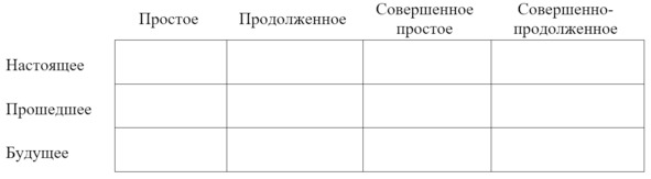 В английском языке у этого дома будет четыре подъезда – вместо одного настоящего времени будет четыре: настоящее простое (Present Simple), настоящее продолженное (Present Continuous), настоящее совершенное (Present Perfect), настоящее совершенно-продолженное (Present Perfect-Continuous). Аналогично для этажей прошедшего и будущего времен.