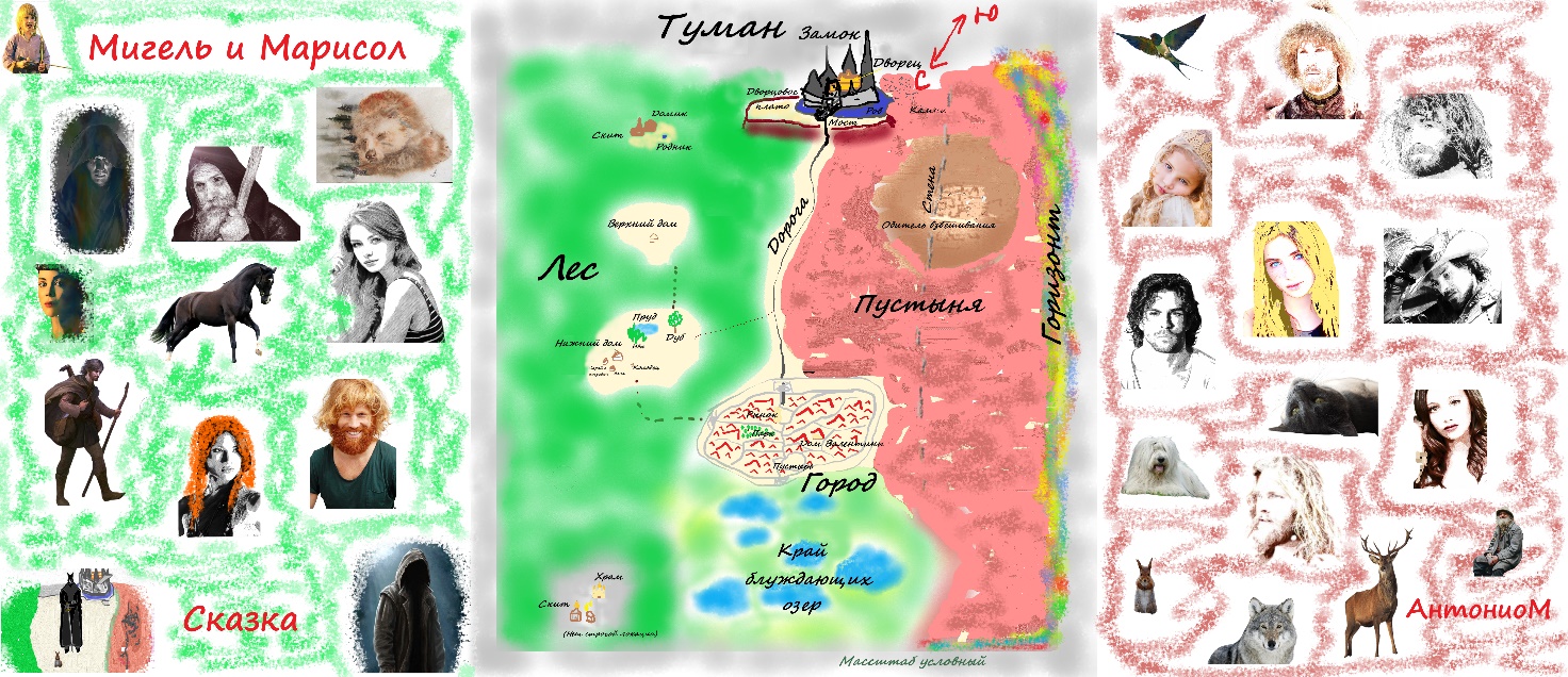 Туман стал редким. Солнце не было видно, но чувствовалось, что оно сзади. И почему-то смеркалось. Даже портфели остались в карете. Впереди был поворот на боковую дорогу. Она не была каменной. Она входила в густой вековой лес. И вела налево. Марисол была маленькой девочкой. Но она смотрела на Мигеля спокойно. Почти спокойно. И как-то грустно. Она взяла его за руку и пошла к лесной дороге. Он не сопротивлялся. Резануло про шпагу. Хотя это скорее был узкий меч. Но он остался в карете. А с ним бы было спокойней.