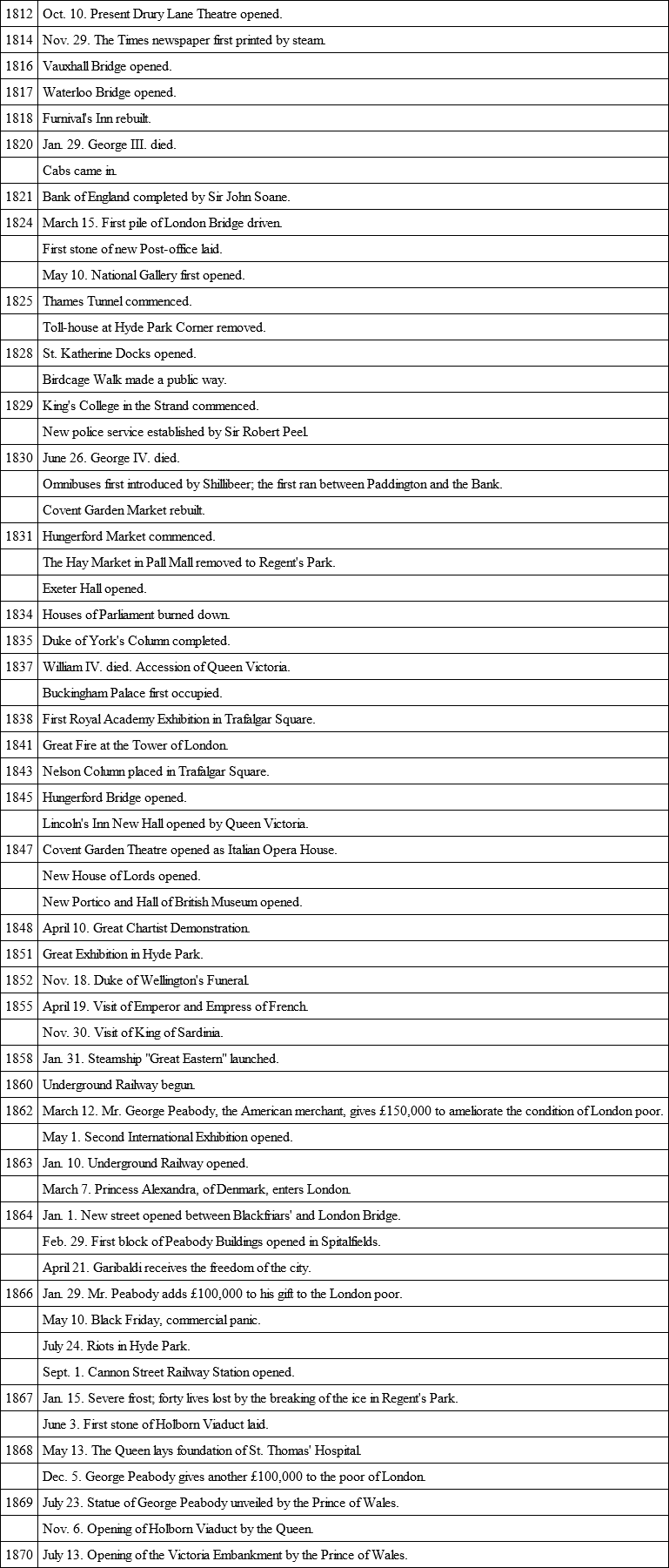 THE ENDA BRIEF CHRONOLOGY OF SOME OF THE MORE IMPORTANT EVENTS IN THE HISTORY OF THE CITY OF LONDON DURING THE LIFETIME OF CHARLES DICKENS