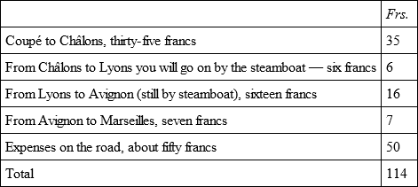Whatever may have been Dumas’ prodigality with regard to money matters in his personal affairs, he was evidently a good traveller, in the sense that he knew how to plan a journey with the greatest economy.
