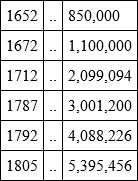 Commencing with the seventeenth century, the population sprang forward with leaps and bounds. Its estimated growth for the succeeding two hundred years is as follows: