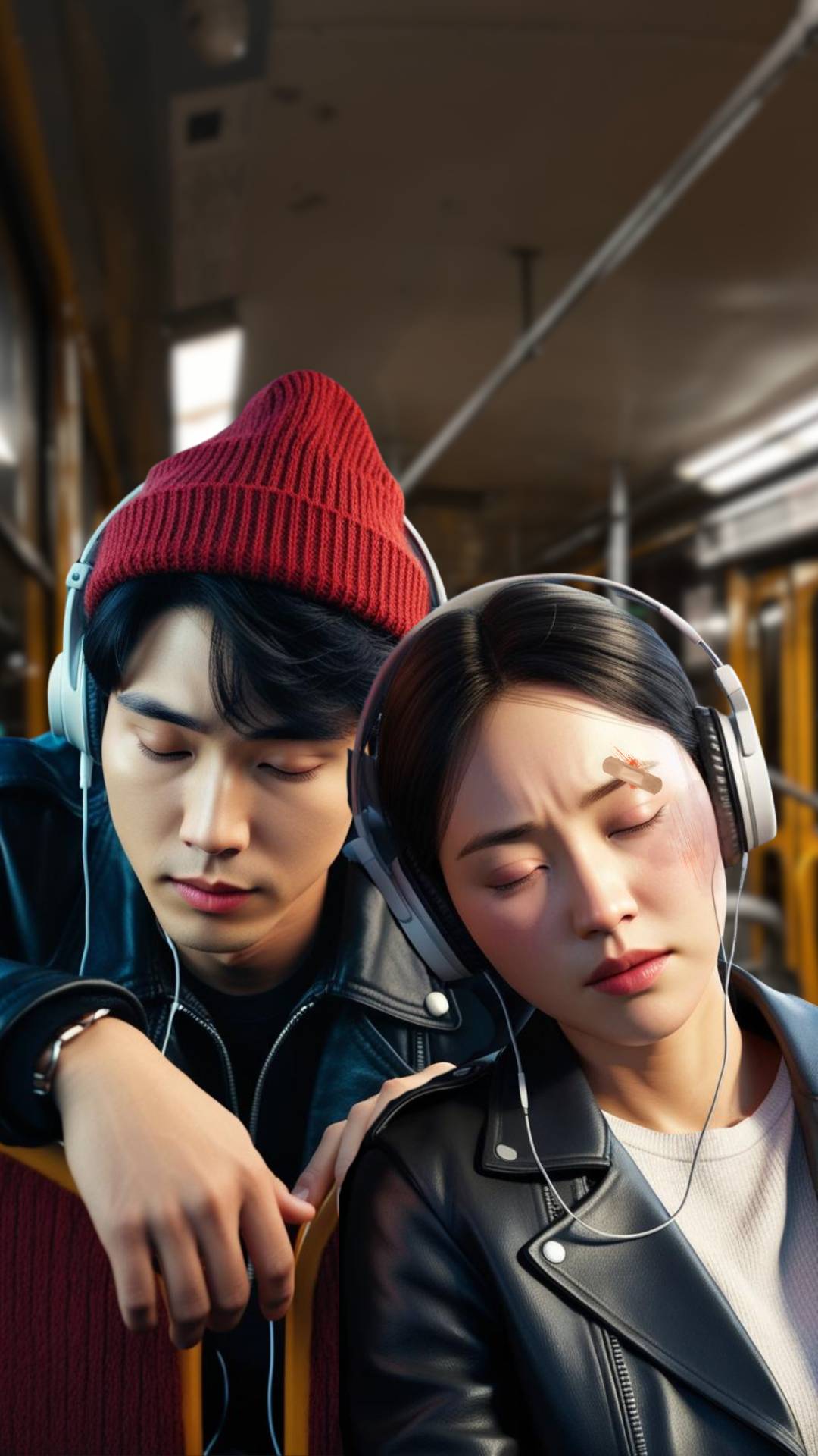 Я проснулась от резкого толчка, автобус внезапно затормозил на перекрестке. Шея затекла, потому что голова завалилась на правый бок. Я слегка приоткрыла глаза и посмотрела перед собой из-под кепки, не поднимая головы. Парня не было, видимо вышел на одной из остановок. Я успокоилась. Музыка играла только в одном наушнике, и я потянулась к правому уху, чтобы поправить провод, он часто отключался в последнее время. Но наушника в ухе не оказалось, зато я нащупала что-то мягкое, на чем я, видимо, лежала все это время. Подняв голову, я лицом к лицу столкнулась с ним. Парень никуда не делся, он просто пересел на соседнее со мной сиденье пока я спала. В его левом ухе нелепо торчал мой правый наушник. Резко дернув провод, я выпрямилась и отстранилась. Парень смотрел на меня сонными глазами, видимо он тоже уснул.