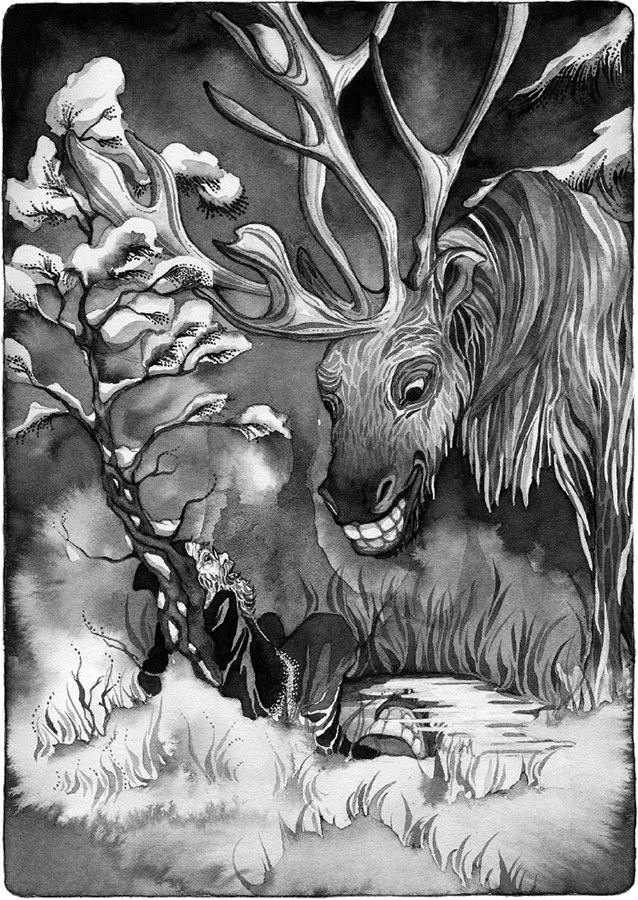 Торвил, который никогда раньше не встречал говорящего оленя, уставился на него, не веря своим глазам.