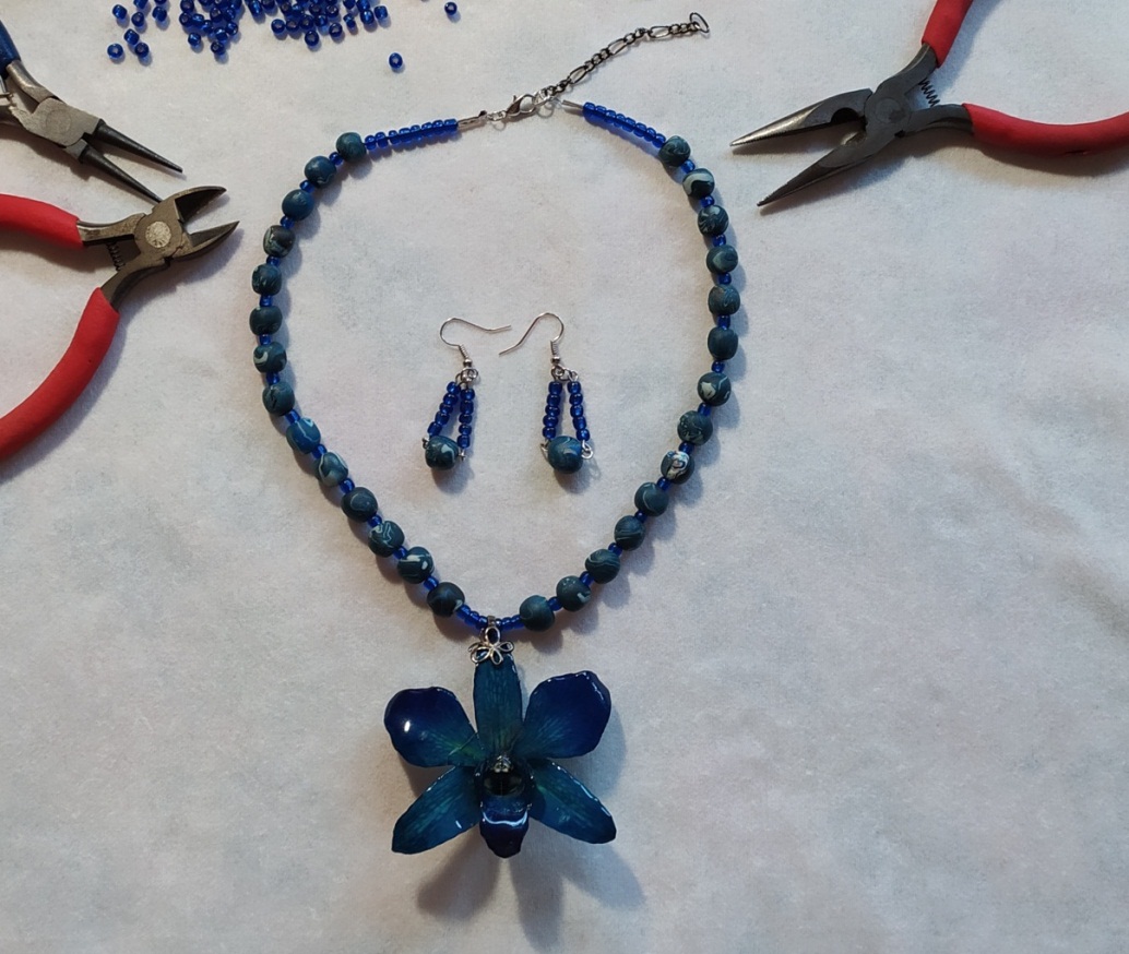 Однажды она принесла мне шикарную орхидею. То ли цветок сам по природе такого цвета, то ли смола кобальтовая, но смотрелась подвеска очень красиво. Уж не знаю, что ей так не понравилось в своём творении, но принесла она мне его со словами:
