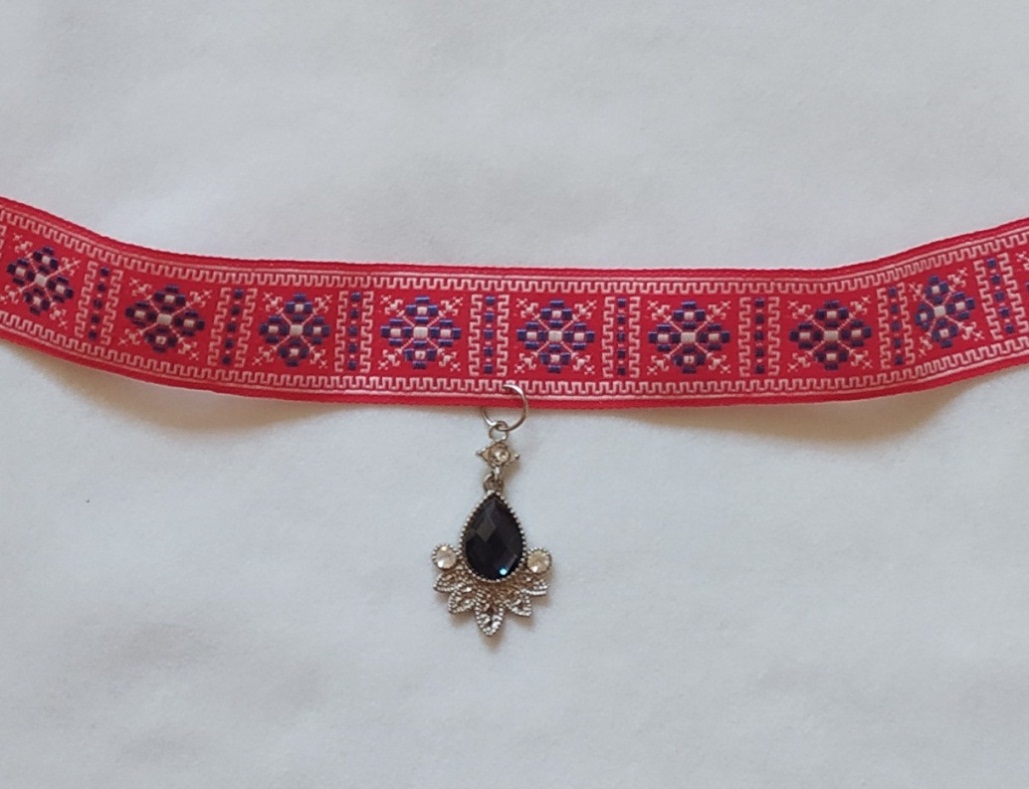 Кружево и тесьму лучше использовать плотной фактуры. Так, под тяжестью подвески, оно не растянется, и будет плотно облегать шею.