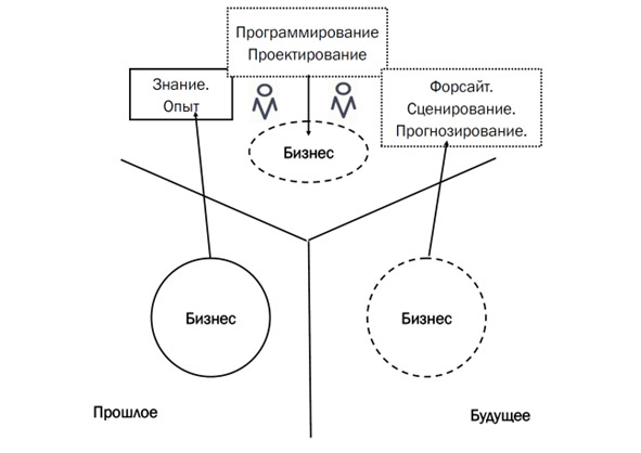 Будущее буквально проектируется и воплощается через процесс преобразования. Фактически реализуется инженерный подход к проектированию будущего организации и управлению процессом его достижения.
