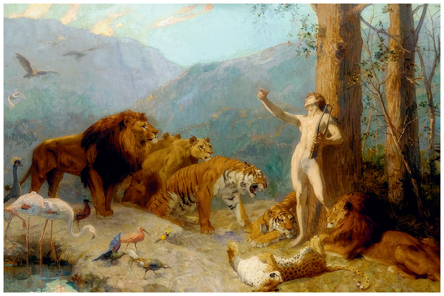 Орфей, очаровывающий животных. Густав Сюран, конец XIX в.