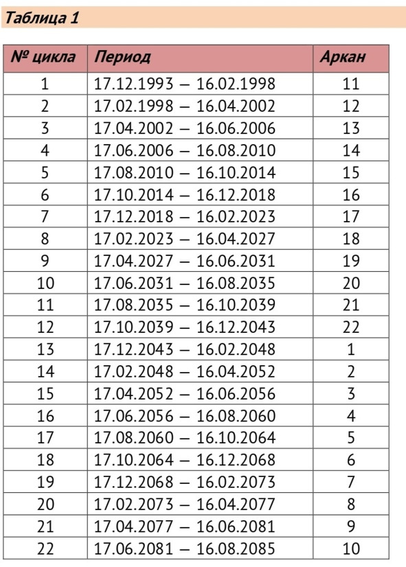 Ровно через год начинается обратный отчет по тем арканам, которые стоят в циклах.