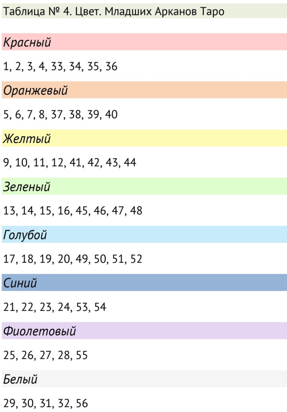 Цвета Младших Арканов Таро