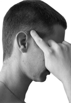 Выполняется легкая акупрессура гармонизирующей точки, расположенной сразу над ухом (фото 9). Воздействуйте только со стороны больного уха до наступления улучшения состояния.