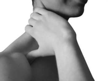 Используйте симметричные гармонизирующие точки у основания шеи. Акупрессура проводится указательными пальцами с нарастающей силой. Большие пальцы при этом сжимают и удерживают мышцу с передней стороны туловища (фото 11, 12).