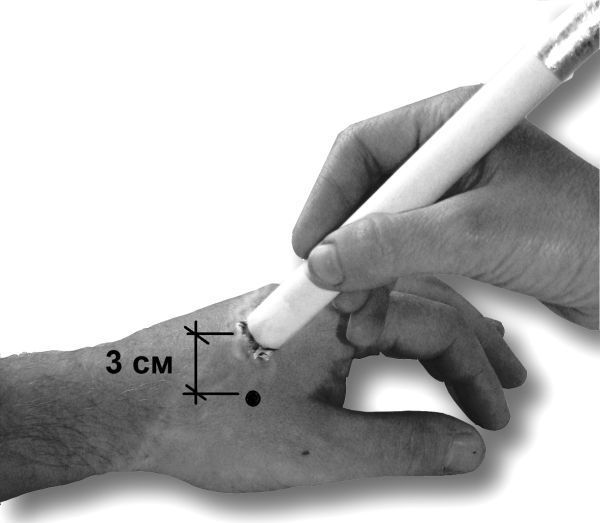 Массаж можно осуществлять простейшими приспособлениями, в таком случае он будет называться механический массаж. Традиционное приспособление для механического массажа – диагностический щуп. Можно приобрести настоящий корейский щуп, но ничем не хуже в работе металлические стержни (круглые дверные ключи, например) длиной не более 10 см с головками диаметром около 3 и 5 мм (чуть меньше). Щупом меньшего диаметра равномерно надавливают на области подобия, точки соответствия органам, траекторию бель-меридиана, чтобы определить болезненную зону или провал. Боль может сопровождаться непроизвольным сокращением мышц ладони или стопы. Любая измененная точка будет предметом дальнейшего воздействия: ее массируют круговым надавливанием щупа большего диаметра – то по часовой, то против часовой стрелки. До тех пор, пока боль не исчезнет и мышцы не расправятся. Идеально, если при работе с точкой возникнет чувство разливающегося тепла, его можно считать окончательным результатом. Если вы работаете с хронической болью, разовый массаж не принесет облегчение. Надо повторять воздействие на точку 3–5 минут через каждые 4 часа, до тех пор пока состояние не улучшится. В качестве массажного щупа можно использовать ватные палочки, карандаши, булавочные головки и спички.