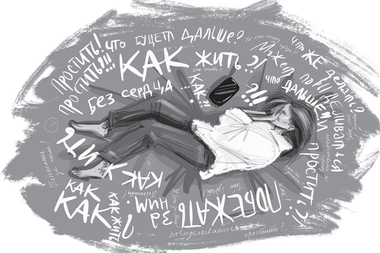 И вышел. Из комнаты моментально высосали кислород, а Марья без сил свалилась на диван и зарыдала так, как рыдают только от невыносимой физической боли. Она долго плакала и кричала, в голове кипел круговорот мыслей: «что будет дальше?», «может, повыделываться и простить?», «побежать за ним?», «как же жить без него?», «как жить без сердца?» Она долго ревела, затем силы начали оставлять её, поэтому Марья просто всхлипывала, продолжая думать о том, что будет дальше. В этих мыслях она задремала.