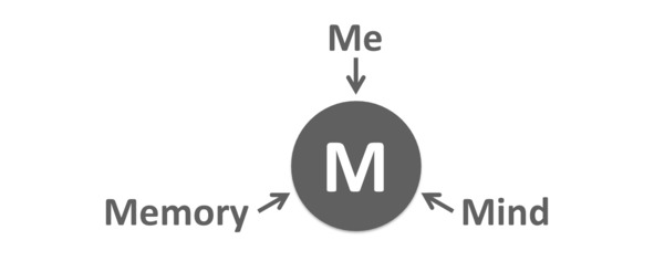 И здесь теория задает вопрос: Кто мы? Ответ на этот вопрос показан на рис. 1. Теория говорит, что разные концепции, которые развивались в философии и психологии, на самом деле могут быть сведены к одному и тому же. Это понятие mind (разума и психики), понятие memory (памяти или всего набора субъективного опыта, которым мы обладаем) и понятие Me или Self (Я). Эту структуру M теория определяет как гиперсеть над нейронной сетью.