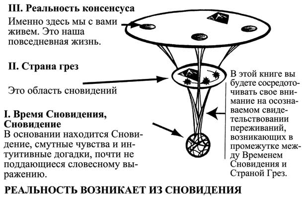 Возможно, вы помните картинку в конце главы 1, на которой показано, как реальность консенсуса вырастает из страны грез и Сновидения. Она снова изображена ниже.