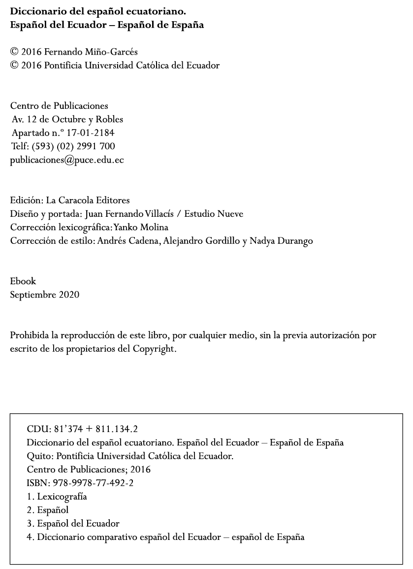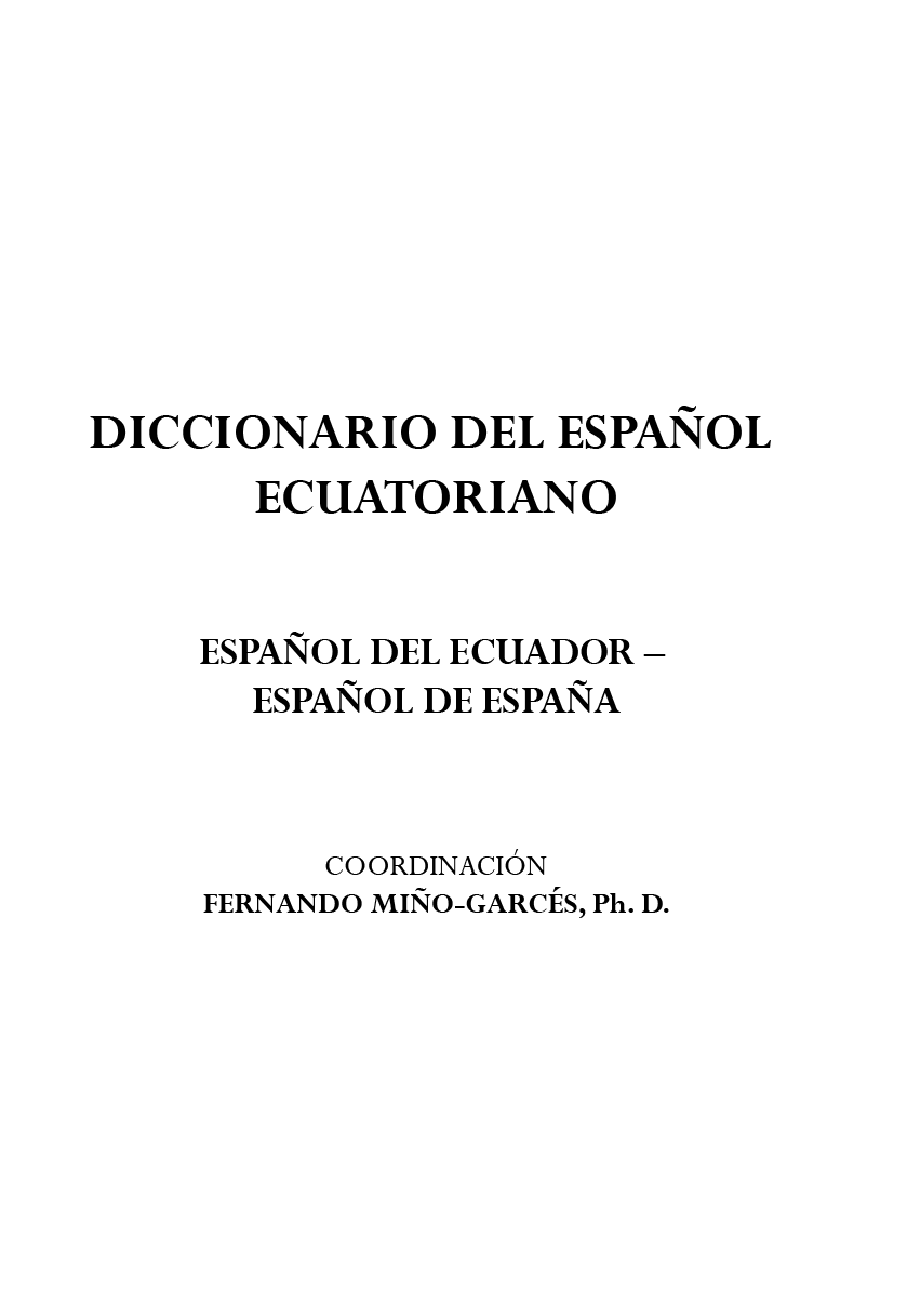 En sus manos entrego una obra que a mi modo de ver contribuye en los siguientes aspectos a la lexicografía ecuatoriana: