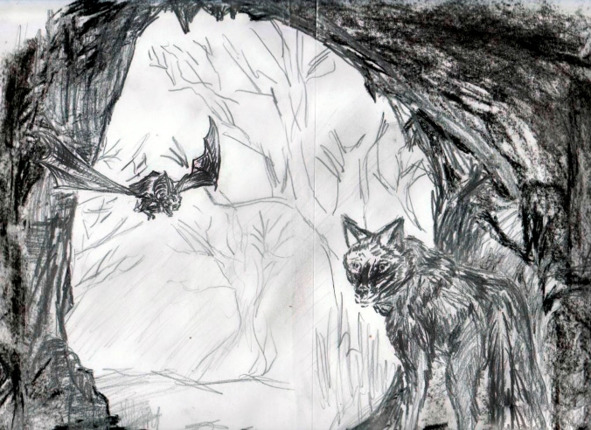 Запах яда, запах рептилии, запах смерти. Волк чувствовал их. Его чутьё человеческим не было уже давно. Картина для него ясна и не настолько мистическая, как для остальных, тех, кто врывался за ним следом в эту злополучную комнату. Но что его побудило её усугубить сомнительной помощью парню? Он протянул последнему флакон с зельем, коротко приказав: «Пей». То, что произошло дальше, будет потом передаваться из уст в уста, обрастая ужасающими деталями, зарождающимися в воспалённых мозгах, давая начало самой страшной легенде. А на деле всё было… Всё было несколько иначе. Парень внезапно исчез. Столь стремительно, что казалось, будто его силуэт повис в воздухе, но после исчезло и это чувство, а на женщине, вцепившись в неё коготками, сидело неприятного вида мохнато-кожистое существо. С большими ушами, маленькими глазками и острыми клыками под свиным пяточком. Волк от неожиданности фыркнул, едва не расхохотавшись, тогда как комната стала наполняться людскими криками. От резких и неприятных для своих новых ушей звуков существо плюхнулось на пол. Волк, не особо деликатничая, послал его пинком, словно мячик, в окно. Шарахаясь в неуверенном полёте и путаясь в крыльях, навстречу луне отправилась новоиспечённая летучая мышь.