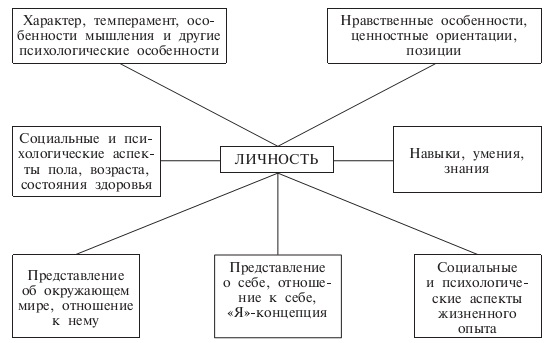 Можно представить следующую схему структуры личности преступника, каждая подструктура которой взаимодействует со всеми остальными, при этом личность преступника отличается от личности законопослушных людей не отсутствием или наличием какой-нибудь подструктуры, а содержанием каждой из них, в первую очередь нравственным.