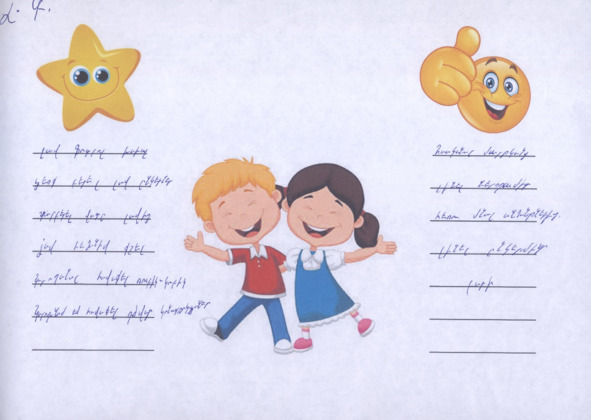 Для развития этого аспекта использовали часть техники «Портфолио», составили специальные анкеты, где школьники записали все свои достижения и хорошие качества (рис.2).