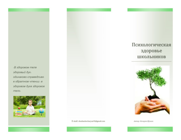 Забота о психологическом здоровье школьников важна и необходима для их развития. Главный вывод статьи заключается в том, что необходимо осведомлять родителей, учителей, классных руководителей о важности профилактики психологического здоровья детей и подростков. С этой целью нами были составлены рекомендации для классных руководителей в виде буклетов. Подчеркиваем, психологическое здоровье школьника – это качество педагогическое (рис. 3).