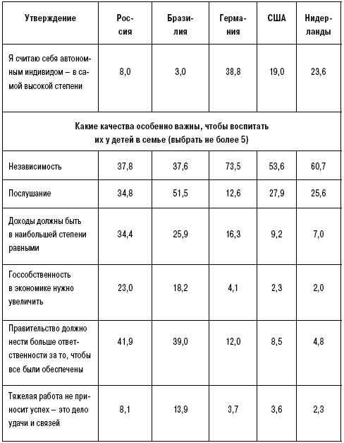 Основы для сравнения дает проект World Values Survey (табл. 1) (его описание см. выше).