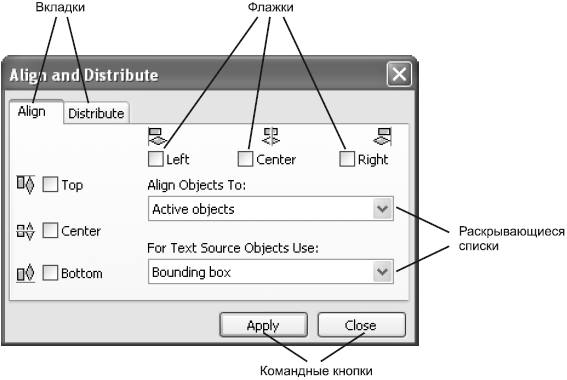 Рис. 1.2.3. Элементы объектной части интерфейса в диалоговом окне