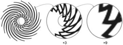 • Число пикселов в растре жестко фиксируется в момент построения модели. При необходимости увеличить размеры изображения приходится либо менять размеры пикселов, либо повторять процедуру построения растра – выполнять повторное растрирование. В главе 3.1 показано, что и то, и другое приводит к нежелательным последствиям, выражающимся в резком снижении качества изображения и появлении артефактов. На рис. 1.2.7 показан пример увеличения размеров пиксельного изображения: отчетливо видны зазубривание кромок и появление вдоль них размытой зоны.