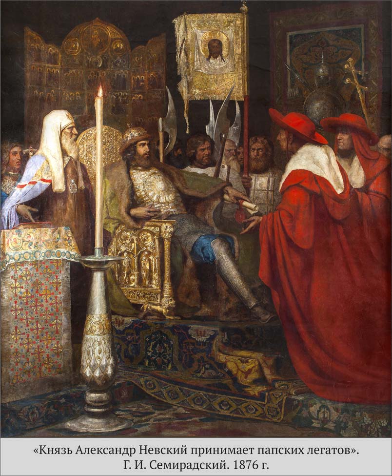 Быть великим князем в стране, завоёванной иностранцами, нелегко. Однажды монголы решили взимать дань с населения Новгорода, который, как мы помним, не был ими завоёван. В Новгород прибыли баскаки (сборщики дани) и пошли по домам, так как дань была объявлена подушной: каждый человек, проживавший в доме (независимо от возраста и размера имущества) должен был платить одинаковых размеров дань. Дань не платили лишь те, кто проживал за воротами храма – в церкви или в монастыре. Новгородцы возмутились, некоторых баскаков поубивали, а остальные помчались в стольный город Владимир к великому князю Александру Ярославовичу.