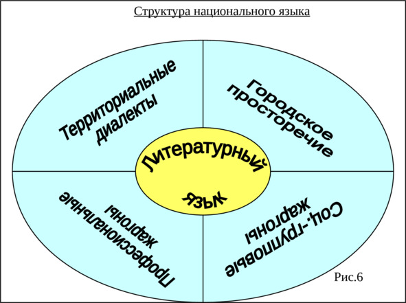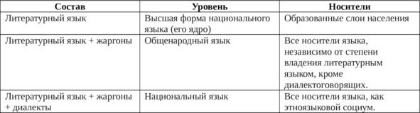 Структуру национального языка, место в ней литературного языка, жаргонов и диалектов можно представить следующим образом.