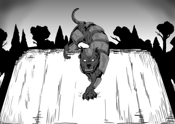 В первую очередь бросались в глаза каменные пластины, располагавшиеся на всем теле этой собаки. Она медленно кралась к Чангу, растягивая этот момент. Чанг же краем глаза углядел доску с гвоздями. Быстро схватив ее, он с замахом из-за головы ударил собаку по ее страшной морде. Но увы, непонятно, на что он вообще рассчитывал. Инерция от этого удара пошла по рукам Чанга, и тот свалился на пол. Доска раскрошилась на мелкие частички, а монстр даже не дрогнул. Он набрасывается на Чанга сверху и держит голову в сантиметре от него. Чанг чувствует его дыхание, видит его убийственные глаза и ужасные зубы. Сердце, кажется, уже взорвалось, а дальше лишь непродолжительный крик на весь остров…