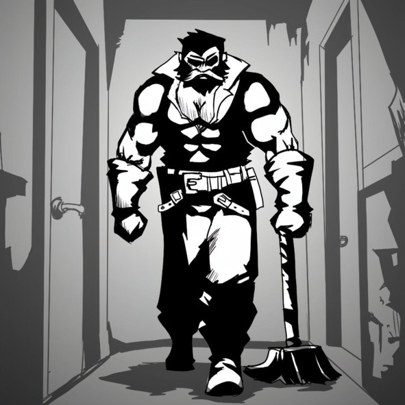 Прямо по центру стоял огромный, здоровый мужик в форме уборщика, который мыл полы шваброй. Рутений и Фенг стояли на входе, и он даже не обращал на них внимания.