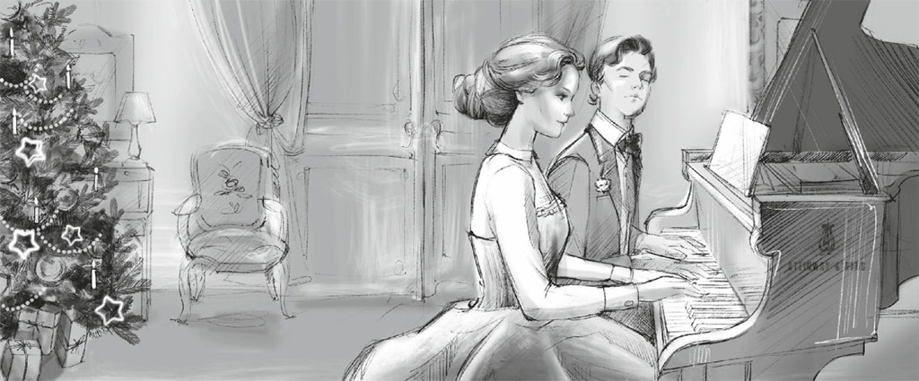 Осенний листопад сменился зимним снегопадом. Наступил рождественский вечер. В седьмом часу за окнами раздался стук копыт, захрустел снег под колёсами подъезжающей кареты. Семейство Хоган спустилось в холл встречать гостей. Их семьи были знакомы давно, главы семейств служили в одном полку во времена франко-прусской войны.