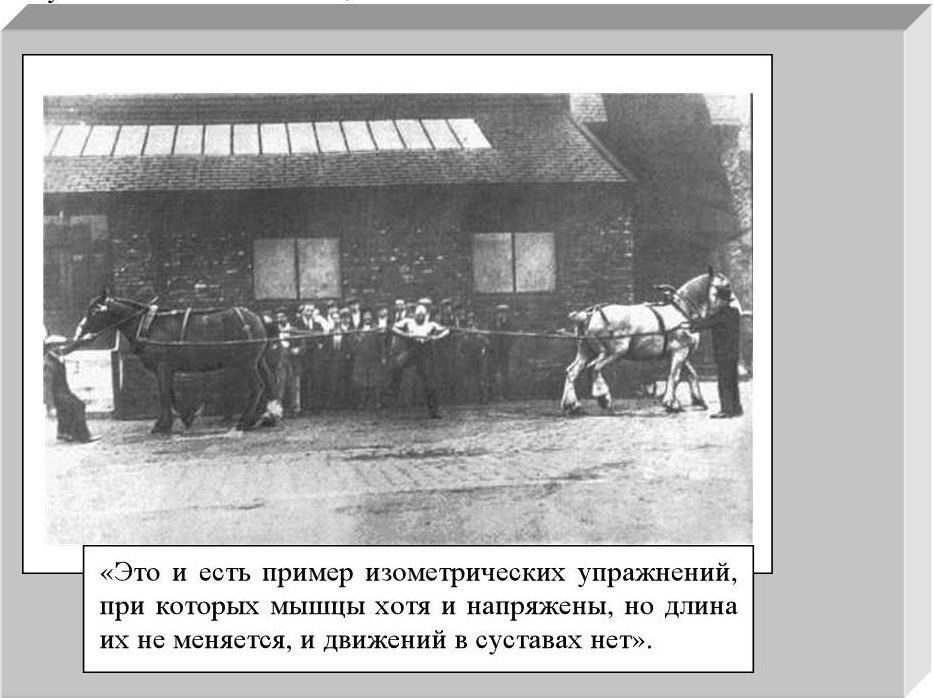 Он считал, что для развития атлетической силы, необходимой профессиональному силачу, поднимать пуды железа вовсе недостаточно. Нужно добавить и нечто другое. Если, например, попытаться согнуть толстый металлический прут или порвать цепь, то эти попытки при многократных повторениях окажутся очень эффективными для развития крепости сухожилий и силы мышц.