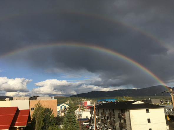 Далеко за мостом, над белыми верхушками скалистых северных гор, висела широкая радуга. Я увидела эту радугу, и она меня привела в восторг, какая же она была красивая! Как украшала собой мой любимый город – дом. Как же вкусно в нём, стоять вот так вот на крыльце своей деревянной избушки, и пить травяной чай с лимоном. Будто впервые видела этот горизонт и эти горы. К горлу подкатил комок. Я подумала о том, какое же красивое лето в городе полуночного солнца.